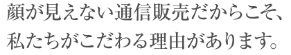 通信販売では、お電話やメールでの会話がお客様との唯一の接点。だからこそ、単に注文を受けるだけの対応ではなく、会話を通してお客様に笑顔になって頂けるような、心の通ったコミュニケーションを目指しています。